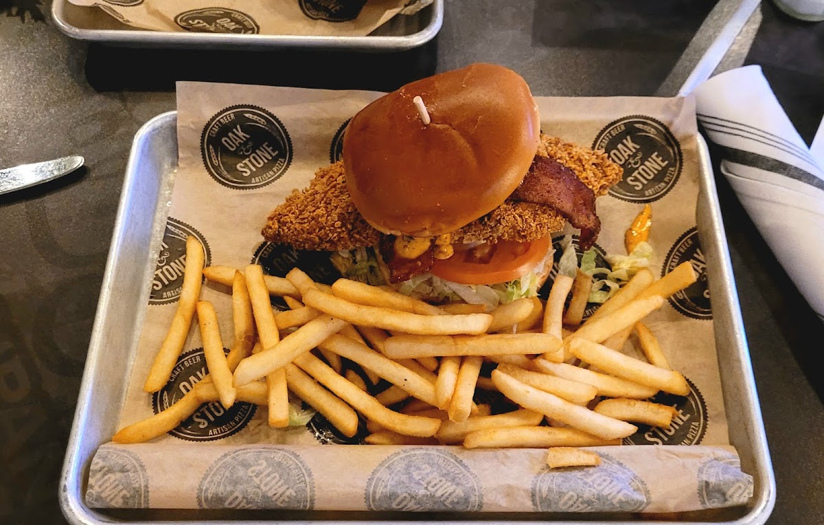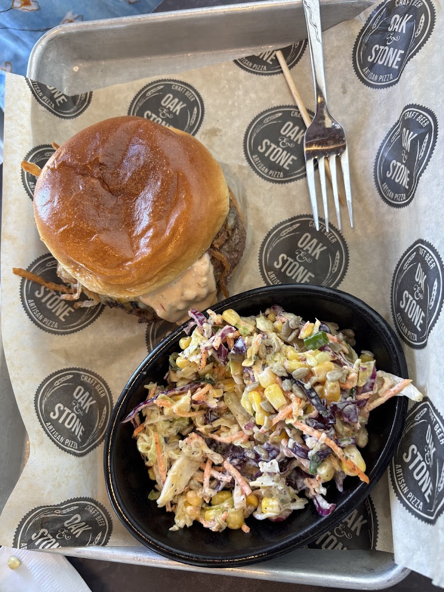 If pizza isn’t your thing, no worries-Oak & Stone has plenty of other options. For those looking for a more substantial meal, their burger options are a must-try. The juicy patties are cooked to perfection, and the toppings are fresh and flavorful. You can even customize your burger to suit your taste, adding toppings or switching up the type of cheese.